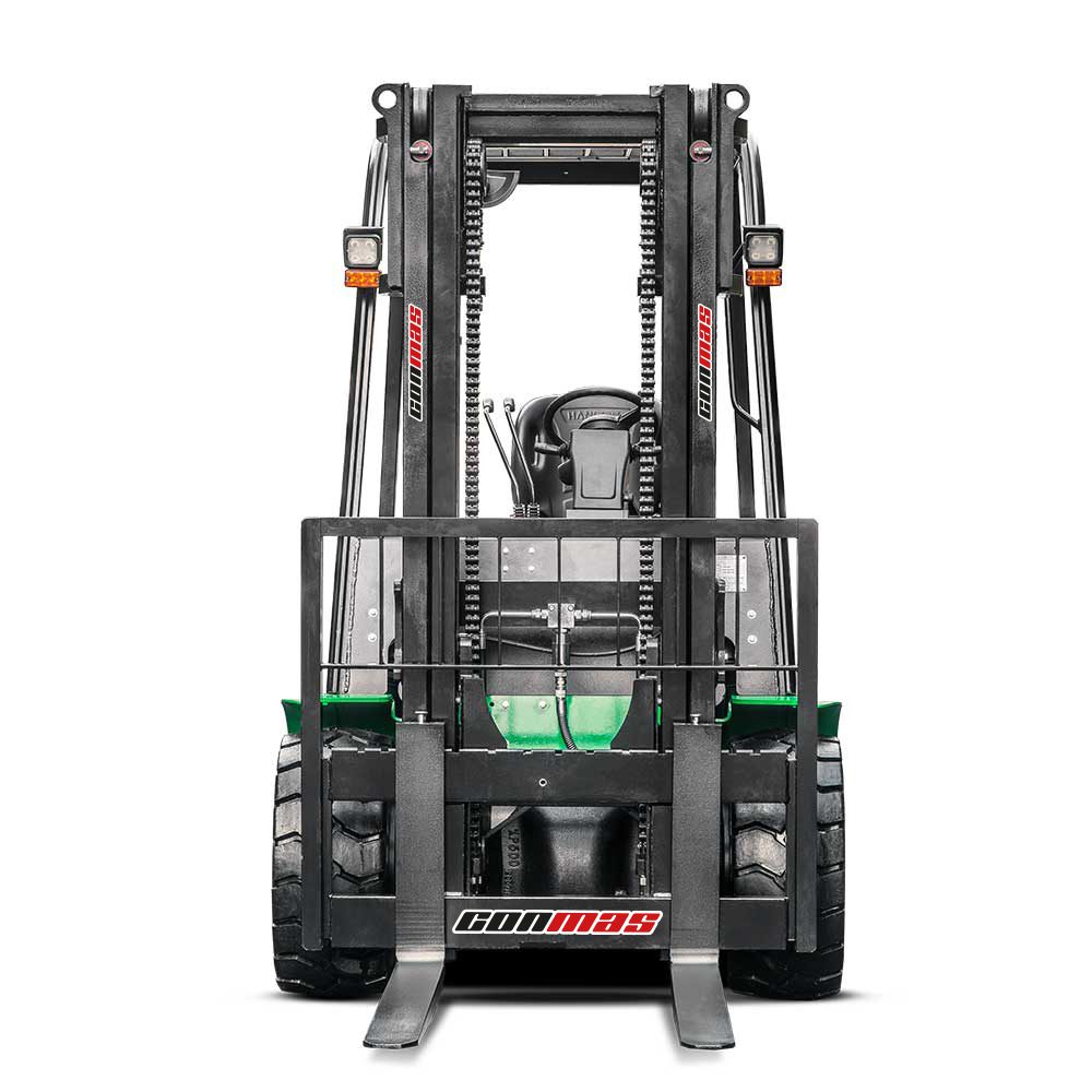 Flexible 4-wheel lithium truck with a lifting capacity of 4000, 4500 or 5000 kg and a lifting height of up to 7 m. The cabin has an ergonomic design with plenty of legroom and an adjustable seat, so you can sit comfortably while working.