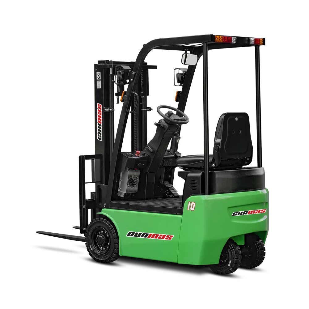 Our lithium truck with a lifting capacity of 800 kg and a lifting height of up to 3 m is perfect for warehouses, supermarkets and other workplaces where a compact and light forklift truck is needed. The 3-wheel forklift truck has a small turning radius, so you can easily maneuver around between shelves, in narrow aisles and the like.