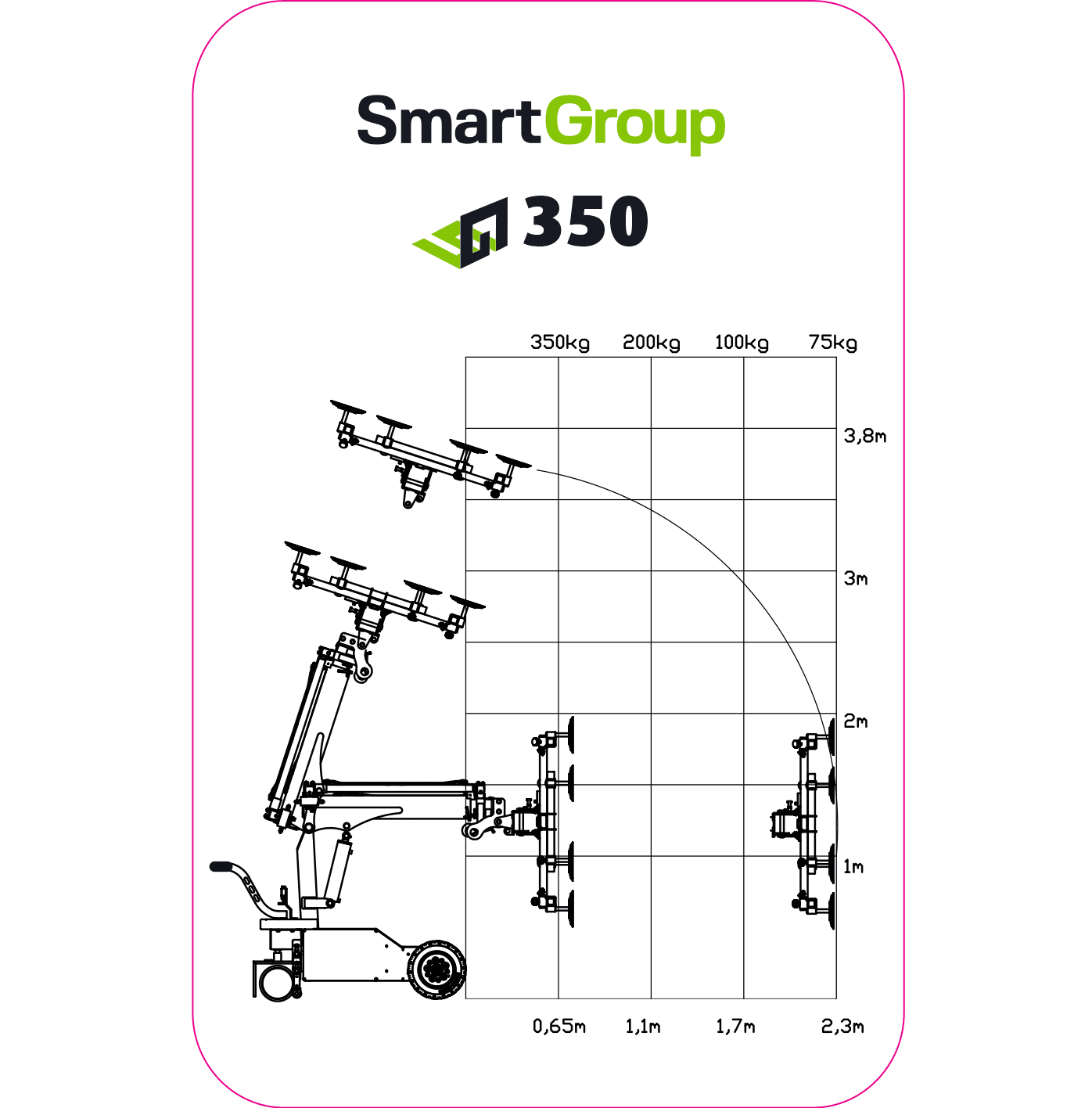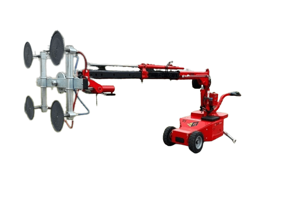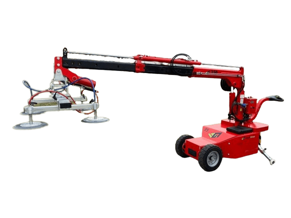 Compact glass robot with a lifting capacity of 350 kg and a reach of up to 3.8 meters. With easy operation of the hydraulic telescopic arm, you can easily lift and install windows, and the solid design of the glass robot ensures optimal stability while working. The glass robot is approved for indoor use.
